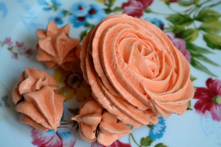 В конце можно красить меренгу пищевыми красителями, у меня гелевые одна капелька дает ощутимый оттенок.