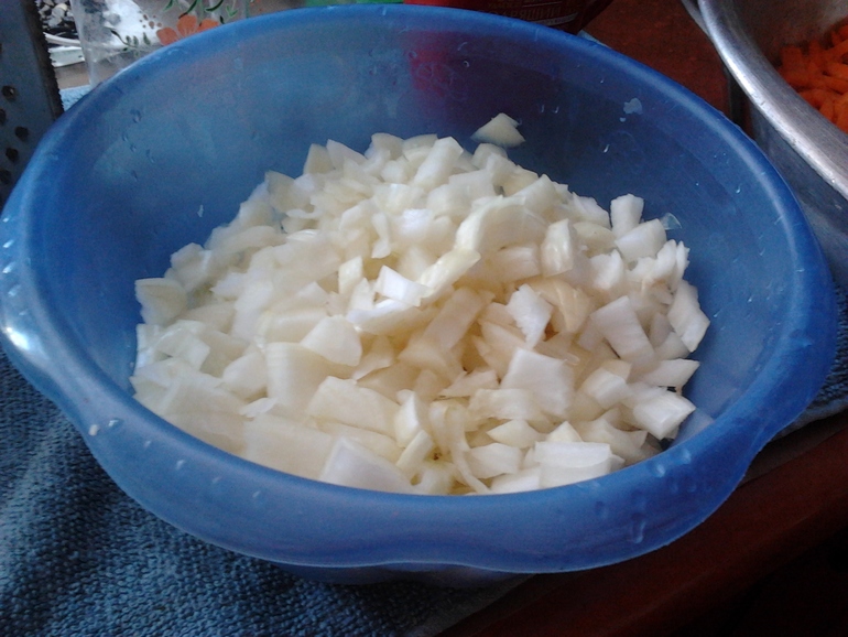 Лук нарезать кубиками