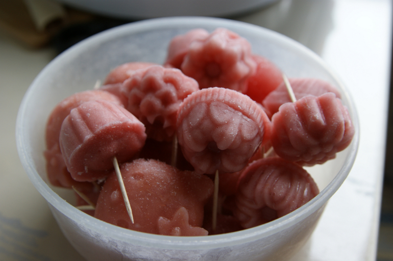 А это остатки пюре с сахаром по формочкам и в морозилку, типа фруктовый лед.
