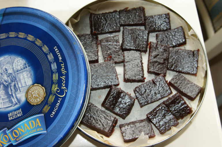 Готовый режу на кусочки и укладываю в жестяную банку.