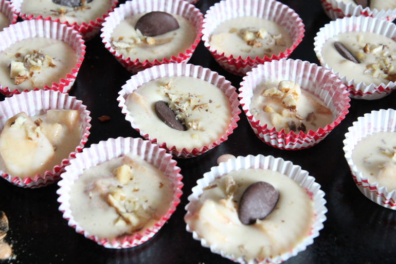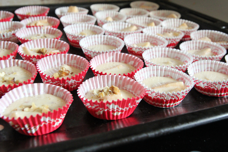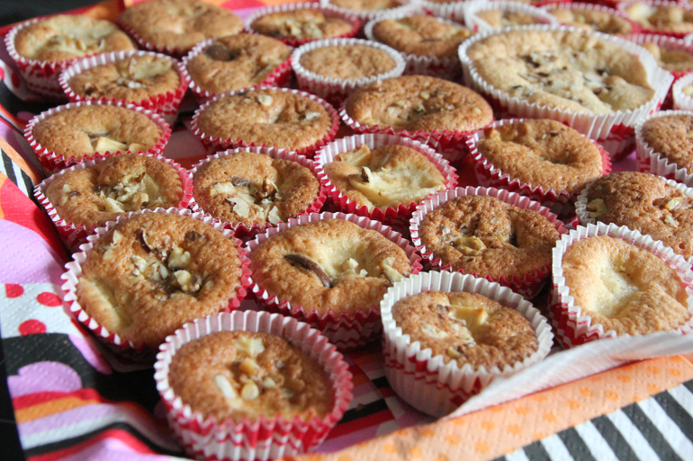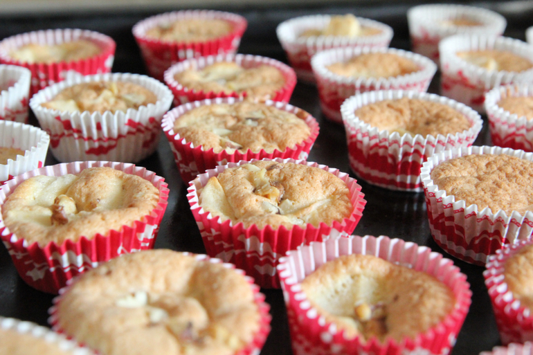 У меня классика - яблоки+грецкие орехи и отдельно в некоторые формочки добавляла кусочек шоколада)).