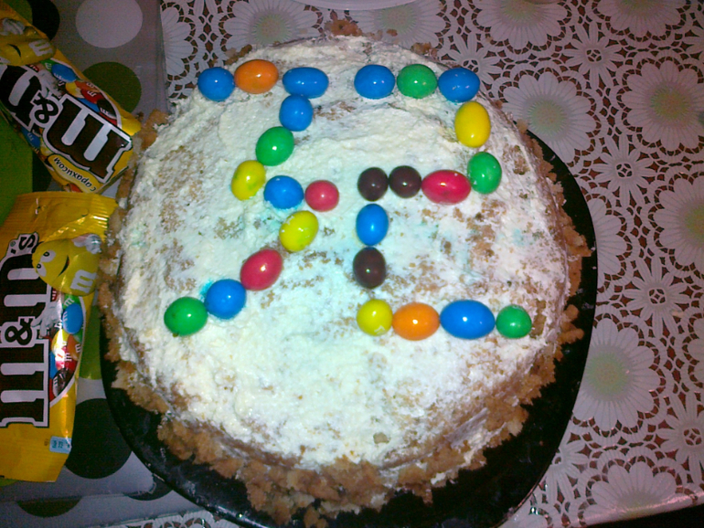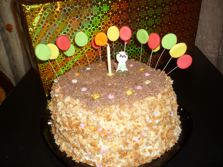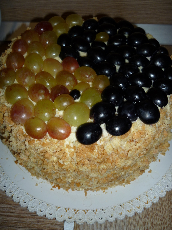 Очень вкусный получился, а вы чем пропитываете? Я взбила сметану со сгущенкой и в ередине промазала, но его надо наверное на три части резать, потому что он огромный😃 и посильней пропитать, я люблю когда хорошо пропитаны тортики