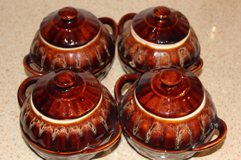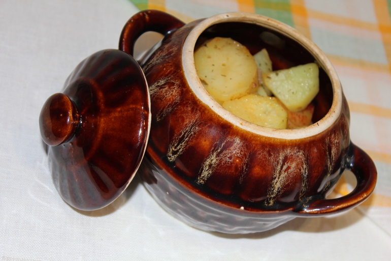 Горшочки закрыть крышками и отправить в духовой шкаф для запекания, Запекать до готовности