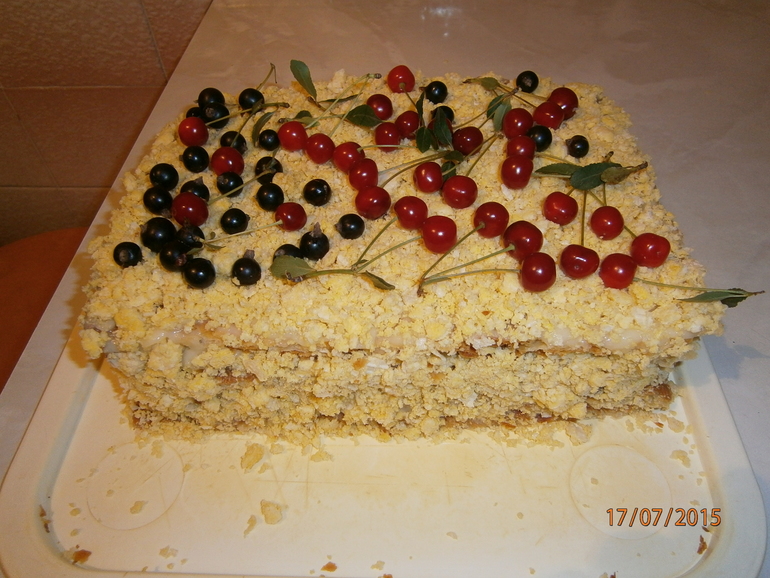Получилась просто катастрофа. Мне от одного вида этого торта становится плохо от масла (остальные едят с удовольствием) + коржи на вкус какие-то никакие - хотелось чего-то ближе к покупному варианту.
