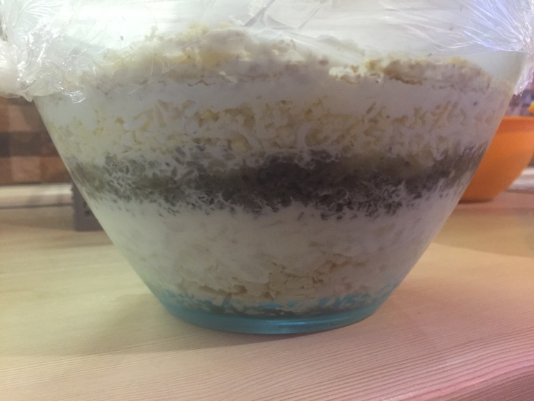 Лет 14 назад этот салатик появился на столах у многих хозяек, и до сих пор остается одним из моих любимых *слоенок*.