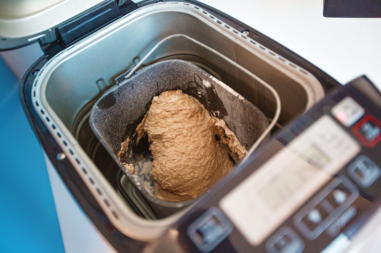 Замес я делаю в хлебопечке (у меня Panasonic), поэтому сразу ставлю её на весы и добавляю ингредиенты в той последовательности, которая указана в инструкции к хлебопечке. Муку обязательно просеивать.