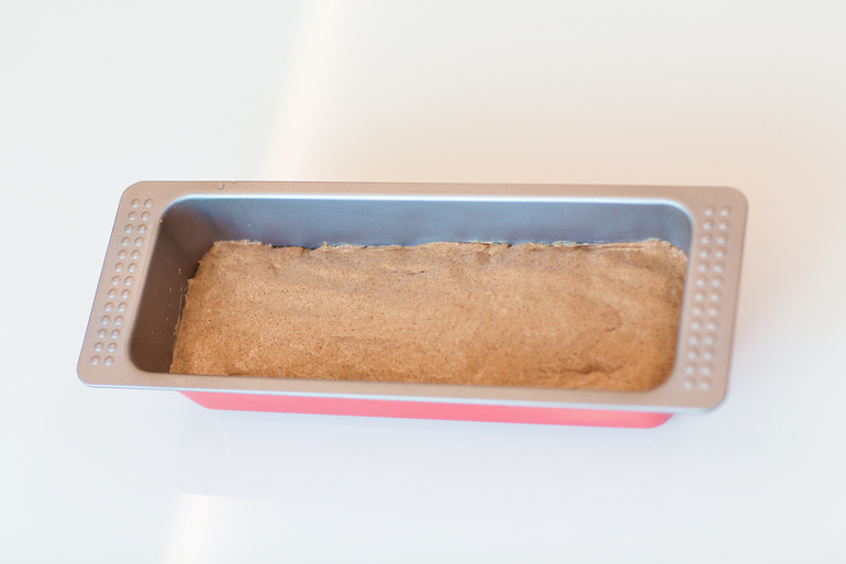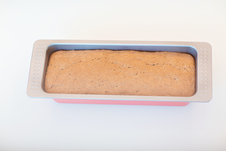 Через 20 минут перекладываем тесто в форму. У меня обычная икеевская форма, я ее чуть смазываю маслом. Силиконовую брать не советуют - тесто "выползает" и хлеб может потерять форму. Обязательно приглаживаем сверху мокрой рукой и накрываем полотенцем, ставим в теплое место на расстойку на 2-4 часа. Если забыть накрыть, то могут появиться сильные трещины сверху. Если закваска молодая(впервые сделана), то хлеб расстаиваться может до 6-ти часов.