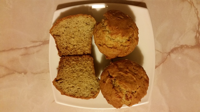 Печенья, пирожные, торты, пончики, кексыПробовала разные рецепты выпечки с бананами, но все они не вызывали желания их повторить... А этот прямо в точку! Сохранила в любимых рецептах. Спешу поделиться. Просто, очень вкусно, а аромат распространяющийся по квартире просто божественный! Из указанного количества ингредиентов получилось 6 штук, но больших. Мне было лень доставать вторую форму и я заполнила до краев одну. Лучше использовать две формы (делать 12 штук) или печь в два захода, но заполнять формочки на половину - быстрее и лучше пропекутся. И еще, на мой вкус кураги мало. В следующий раз положу минимум в два раза больше.
