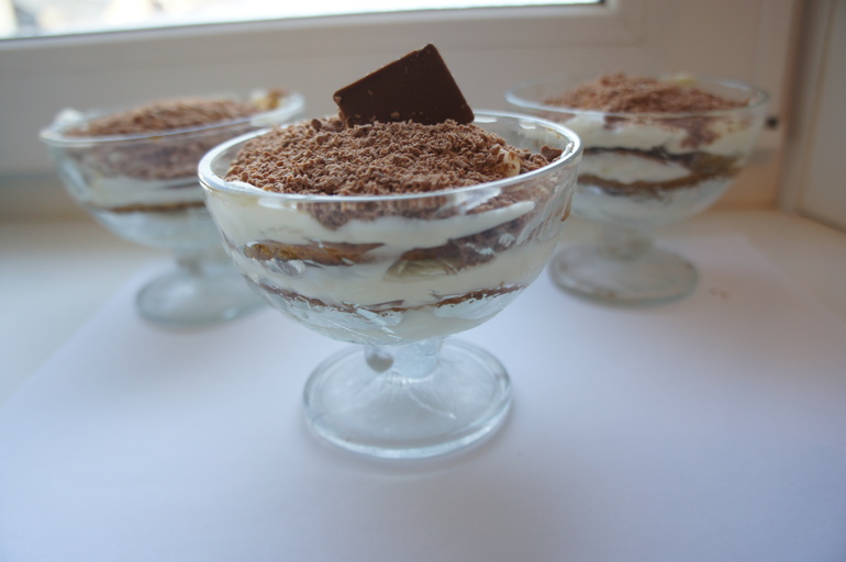 - тирамису; вместо печенья пеку обычный бисквит, посыпаю тертым шоколадом.