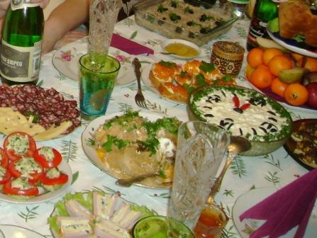 Меню на 5 взрослых и один ребенок 8 лет. Пить будем шампанское и коньяк (мужчины). Ребенку сок.