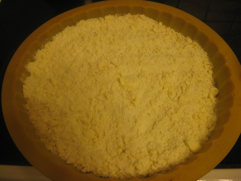 Перетереть руками с равномерную крошку и убираем в холодильник.