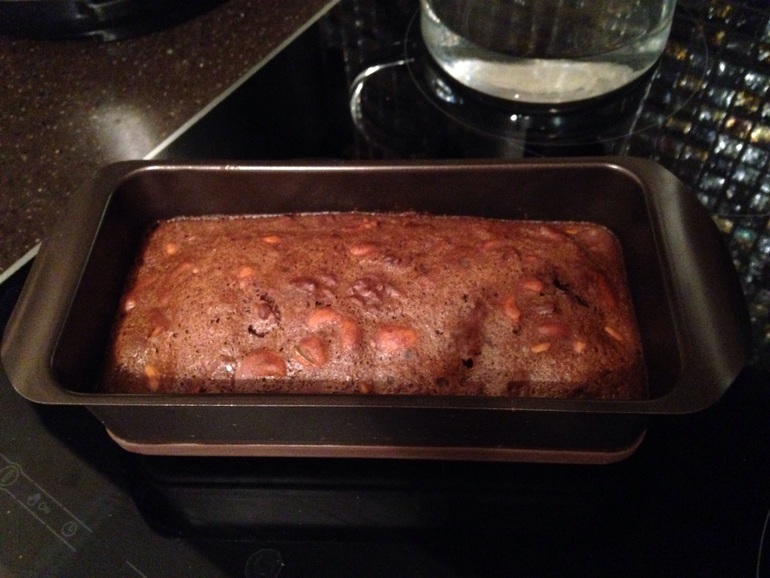 Готовим форму и выливаем в нее нашу ореховую массу. Выпекаем 55-60 минут при температуре 180 градусов.