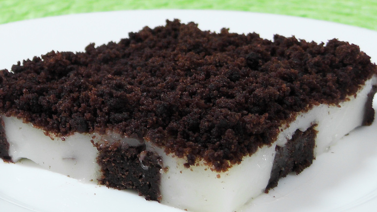 Яйца растираем добела с сахаром, добавляем молоко, растительное масло, ванильный сахар и просеиваем муку с какао и разрыхлителем. Перемешиваем до однородной массы. Форму смазываем маслом и наполняем тестом. Выпекаем при ттемпературе 180*С - 15 минут. Для крема смешиваем кукурузный крахмал, муку, сахар и ванильный сахар, разбавляем молоком и ставим на огонь. Варим до густоты. В горячем бисквите делаем отверстия и наполняем кремом. Посыпаем бисквитной крошкой. Ставим в холодильник на ночь.