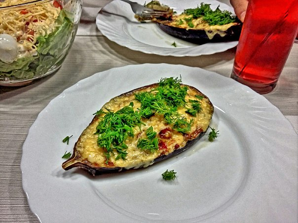 Разрезаем попалам баклажан, аккуратно вырезаем внутренность, чтобы получилась лодочка