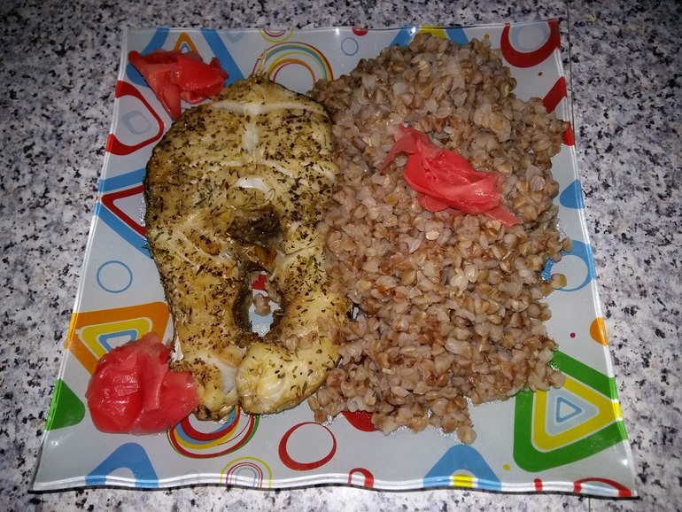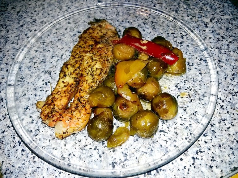5. Красная рыба с брюссельской капустой и болгарским перцем