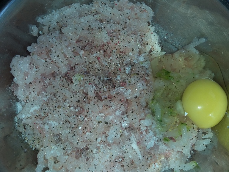 Мякоть рыбы смолоть вместе с луком: