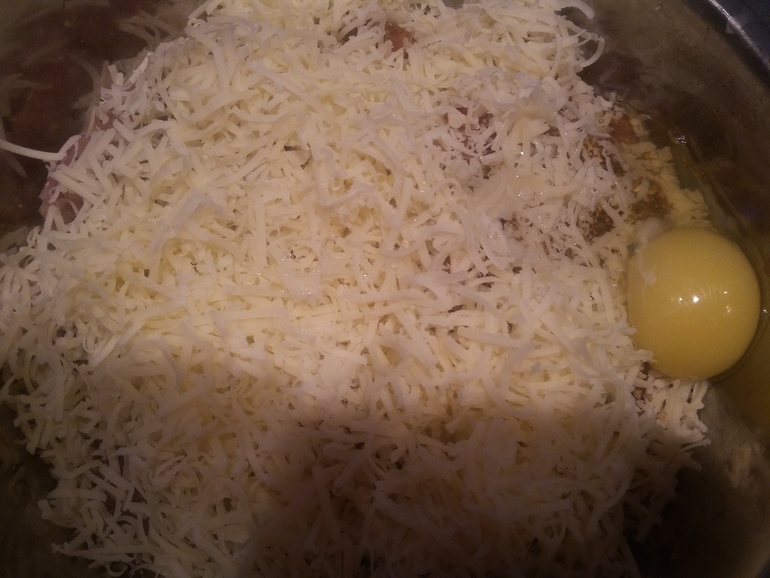 Вбить 1 яйцо и 100 г пармезана: