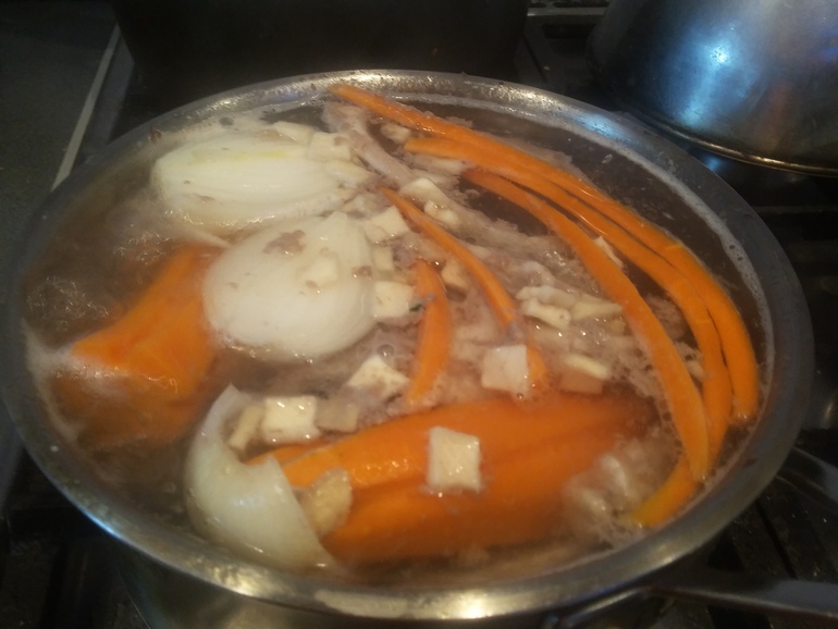 Залить процеженным бульоном: