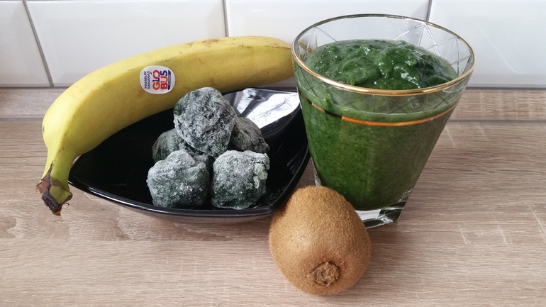 Тоже мой хит. В неделю 2-3 раза его делаю , только шпинат всегда свежий беру . Ещё киви можно заменить на апельсиновый фреш , оч похожее сочетание .