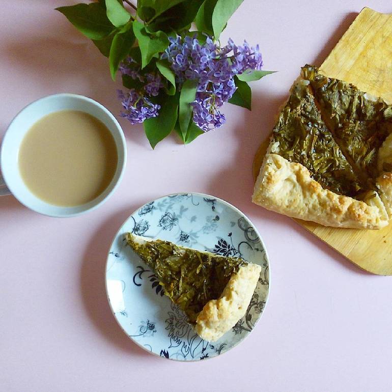 Щавель порубить ножом . Тесто раскатать на противне , в середину выложить щавель и посыпать сахарным песком . Тут как кто любит , я посыпаю тремя столовыми ложками песка . Края теста загнуть на начинку и выпекать 20 - 30 минут , в зависимости от духовки . Пирог должен стать светло - золотистого цвета .