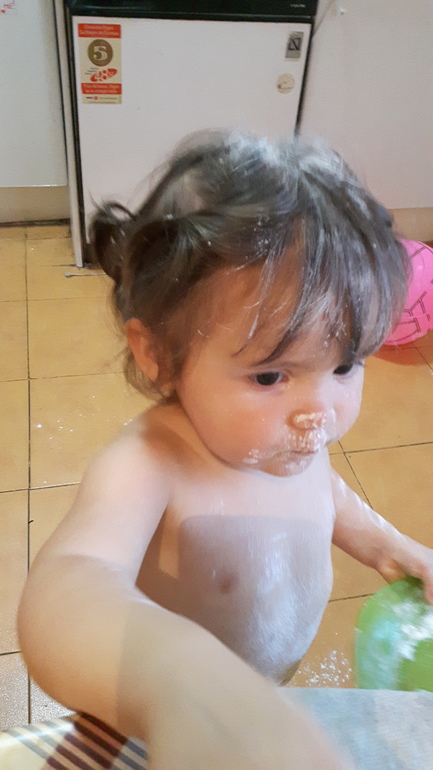 Я делаю ещё чесночок в масле..беру 2-3 зубчика чеснока..продавливаю через давилку и солю немного и растительное масло добавляю..и мажу этим чесноком совсем чуть чуть сверху перемяч перед едой...можно и без этого соуса)) но нам с ним вкуснее кажется)) Ну и отдельное спасибо моей помощнице за её терпение ))