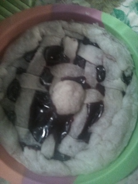 Начинку выложить на тесто, украсить полосками по желанию[у меня сеточка]