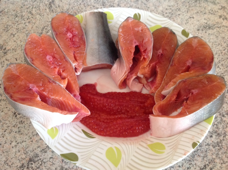 Хм...Это горбуша? У нас по 99 руб/кг сейчас она)))) тоже с икрой напокупали)))
