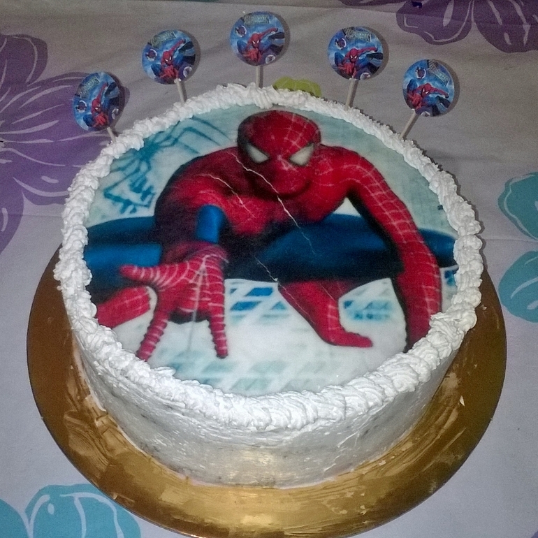 НУ вот добралась до украшения вафельными картинками. Внутри ванильный бисквит на кипятке. крем взбитые растительные сливки с творожным сыром. Верх покрыт декор гелем. Интересно было пробовать первый раз такое. Рецепт торта писала уже несколько раз, но наверно придется повторить.