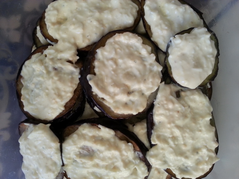 Блюда из овощейБыстро и вкусно.нарезать и пожарить. 2 яйца, майонез и чеснок смешать и смазать сверху.