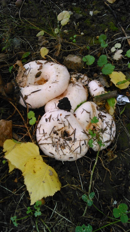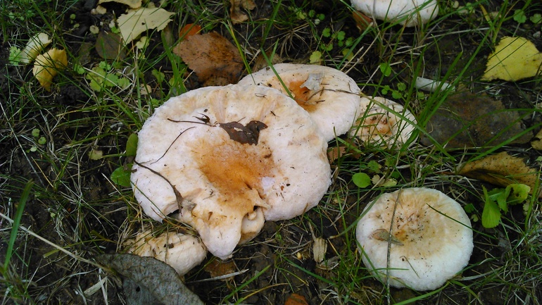 У вас двор частный или общественный? Возле леса живете? Я б не рискнула в городском дворе грибы собирать. По теме -- похожи на волнушки. У нас в лесопарке их много в этом году.