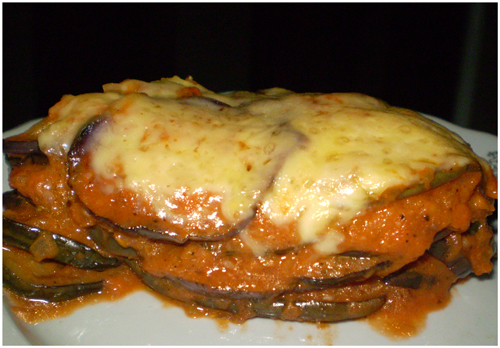 Подготовленные баклажаны укладываем в форму чередуя с готовым соусом.