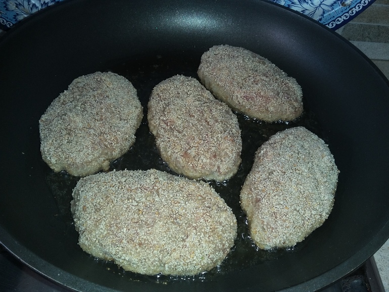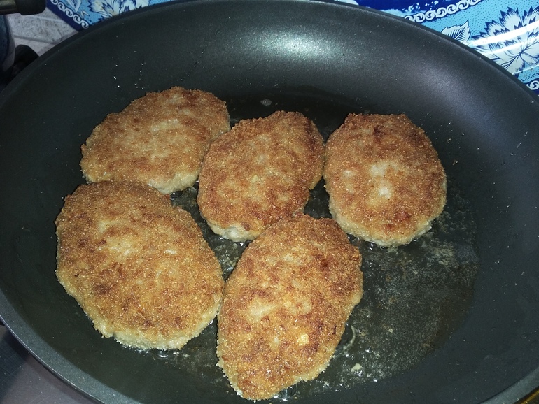 Сформировать котлеты, обвалять в сухарях. Обжарить на растительном масле: