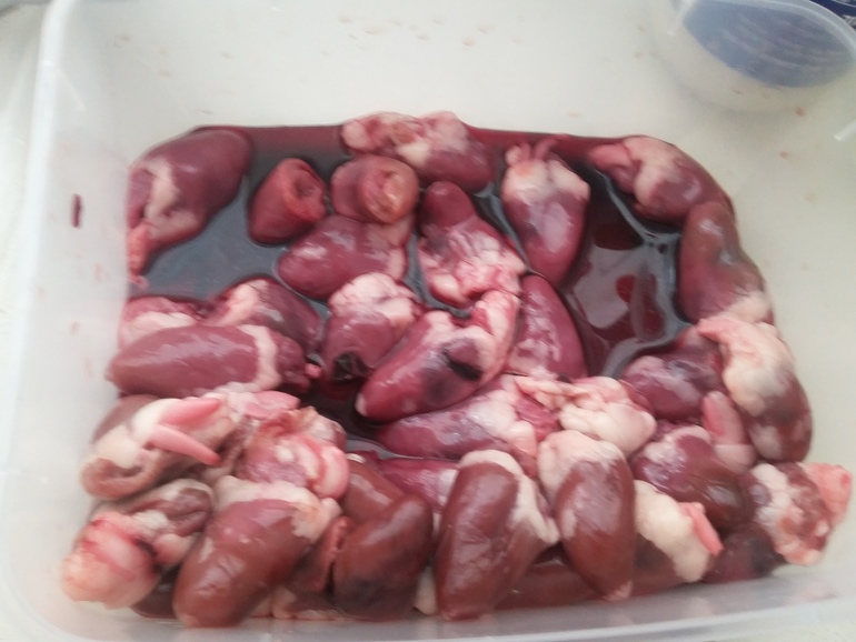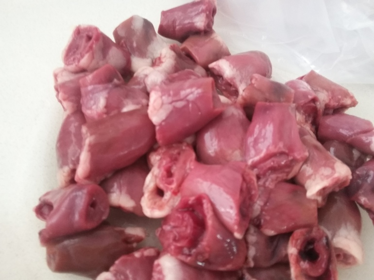 Куриные сердечки разморозить, промыть: