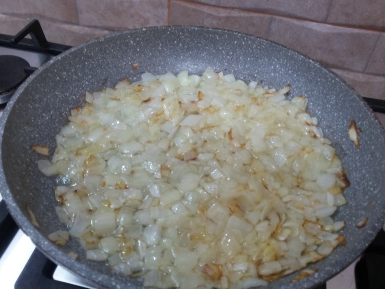 В большой сковороде на оливковом масле обжарить лук: