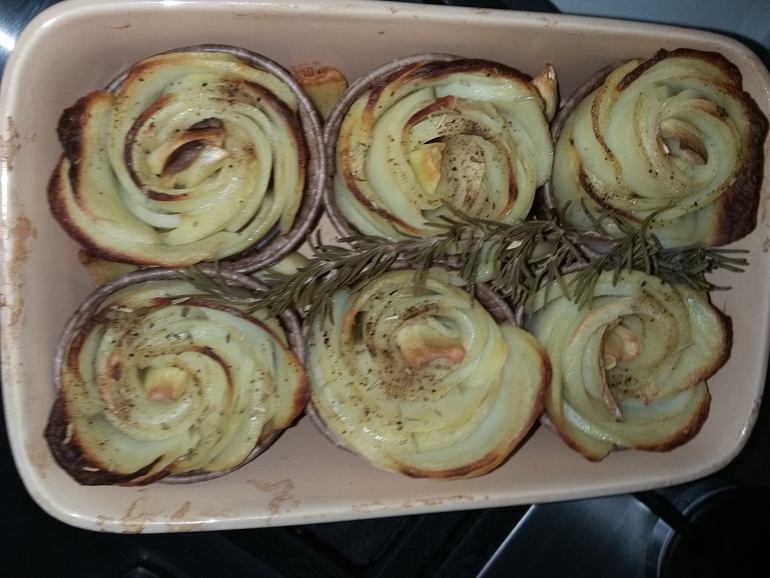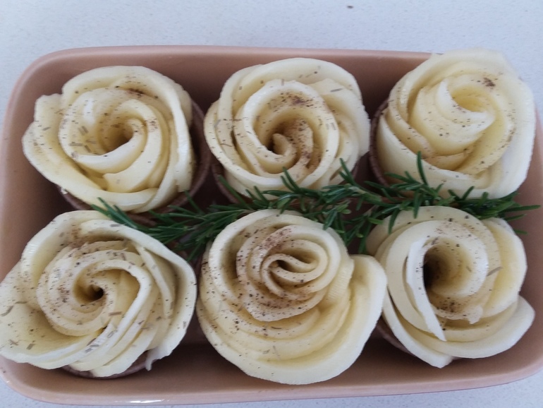 В Кацрине вставляла розы в бумажные формы для кексов и запекала с розмарином: