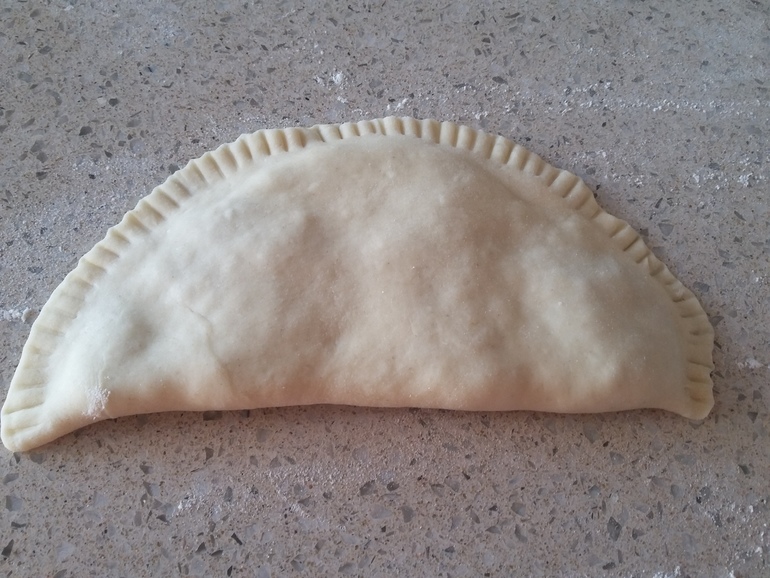 Закрыть второй половинкой и защипать края: