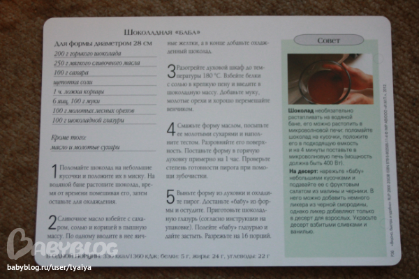 Коллекция состоит из великолепно оформленных карточек с рецептами, которые Вы собираете в удобный и компактный кейс. Каждый рецепт снабжен наглядными иллюстрациями, оригинальными идеями сервировки, а также советами, как разнообразить любимое блюдо для праздника или сделать его менее калорийным. Рецепты разделены по 15 разделам, причем Вы сразу можете видеть все свои рецепты и выбрать нужную карточку.