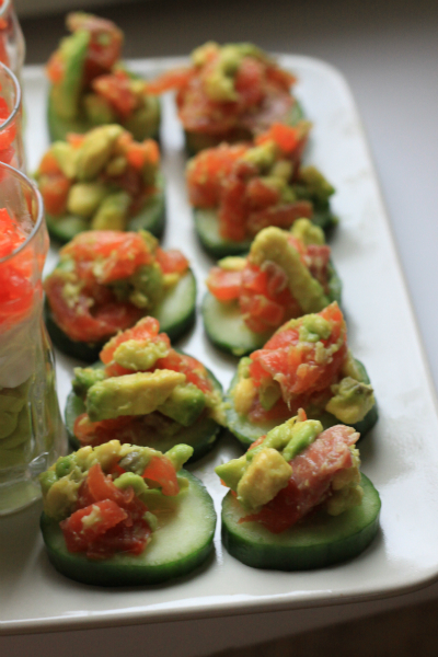 ТАРТАР ИЗ ЛОСОСЯ И АВОКАДО НА ОГУРЦАХ