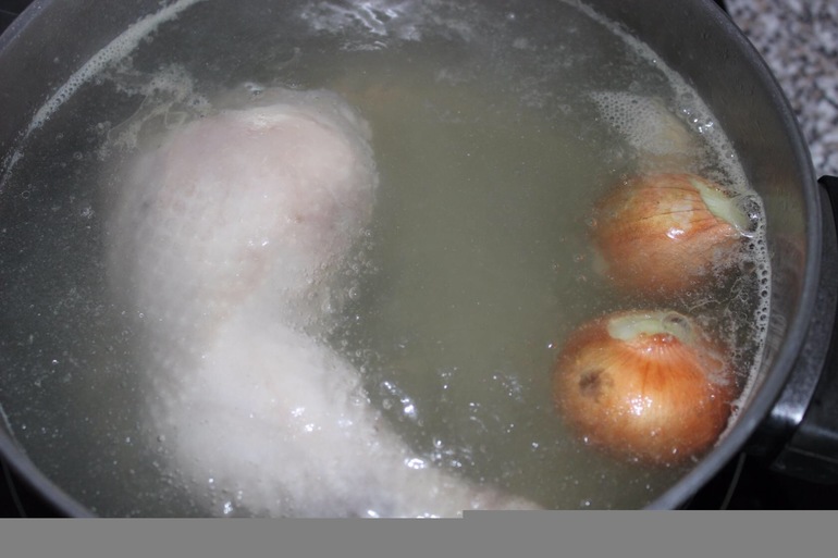 Варим бульон на медленном огне, не закрывая крышкой, пока не будет готова курица, если нужно долить воды, то доливаем горячаю кепячёную.
