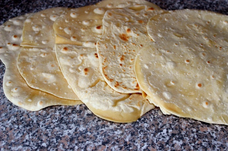 Делим на 5 лепёшек, которые тонко раскатываем