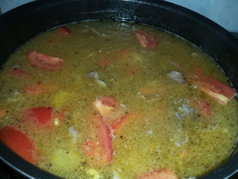 Добавить болгарский перец, чеснок и помидоры: