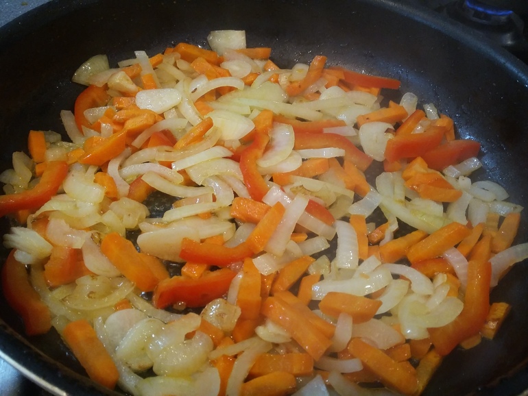 Обжарить морковь и лук: