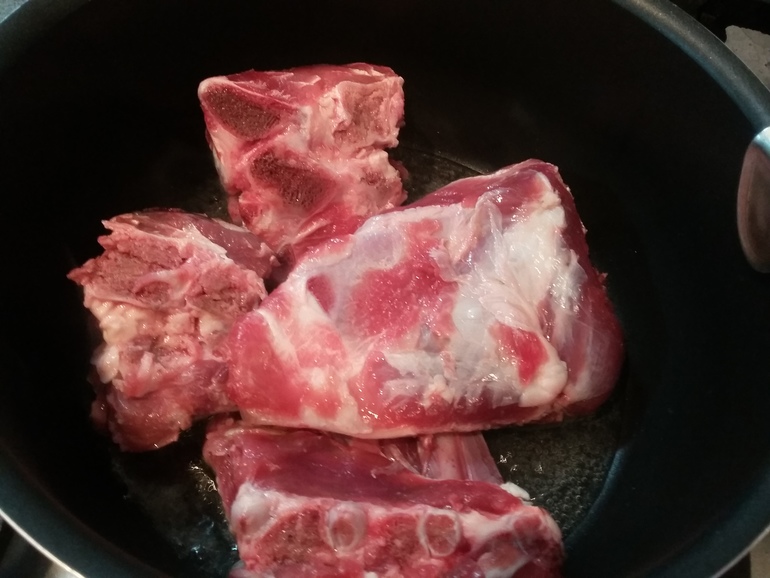 Обжарить в сотейники ребра баранины: