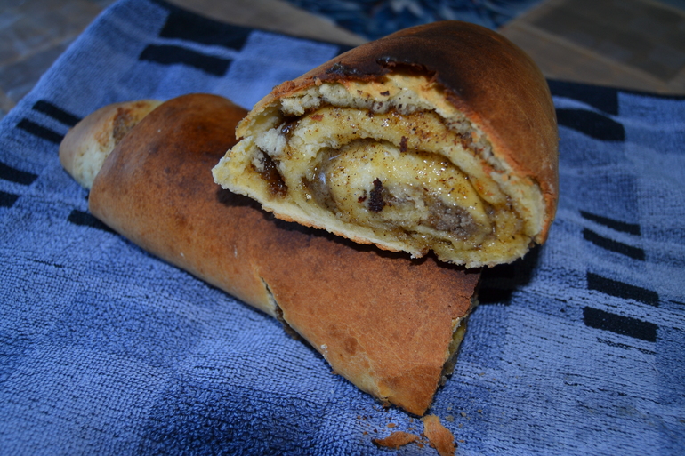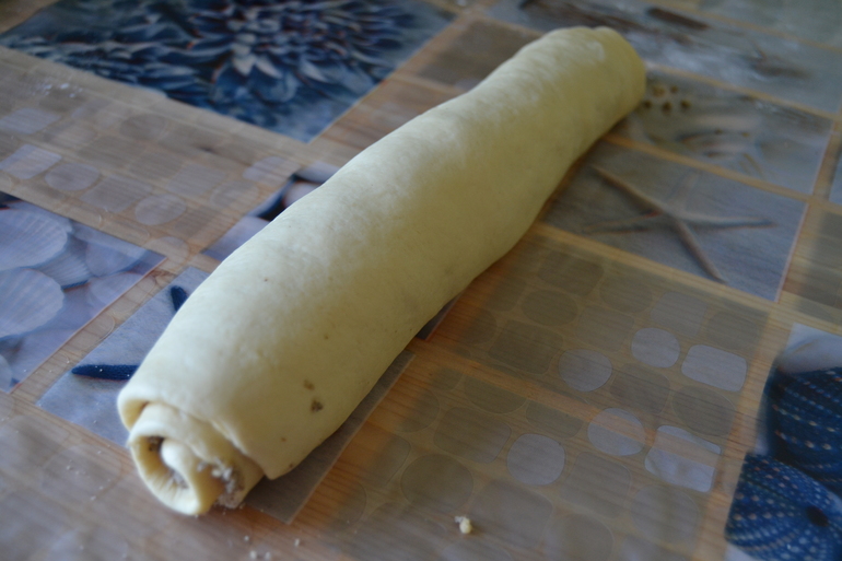 Свернули и выпекаем 30 минут при температуре 200 градусов. Можно перед выпекание смазать яйцом я это не делала.