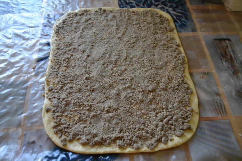 Посыпали начинкой и придавили руками чтоб не рассыпалось