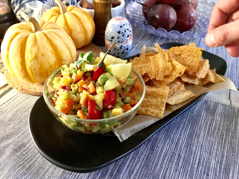 Диетические блюда...по мексиканским мотивам. Очень недурно , говорят, с чипсами, а мне и так неплохо, тем более салат очень ППшный, но совсем не скучный. Очень яркий и нарядный получается! А сколько в нем клетчатки! Вполне себе диетический дип, на замену скучной pico de gallo.