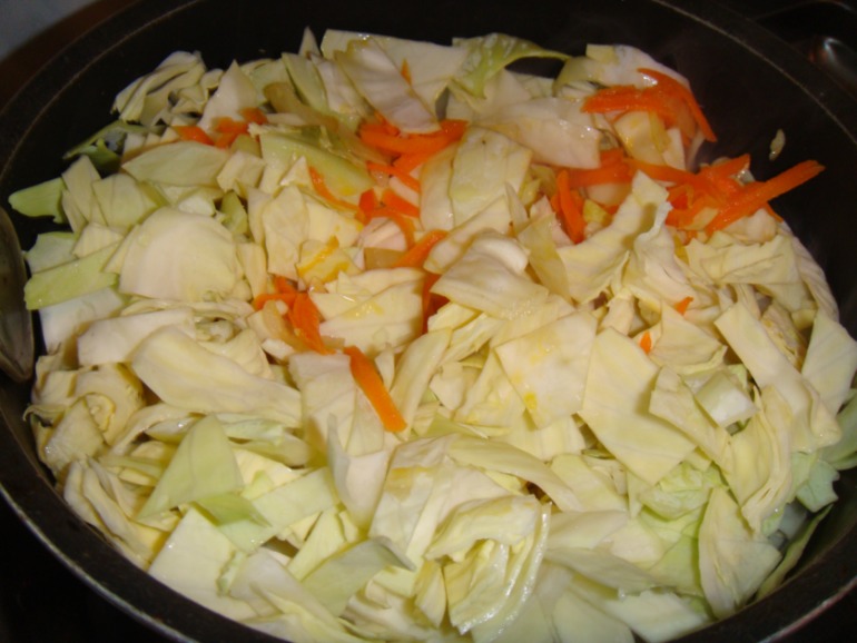 Развести 1 ст.л. муки в половине стакана холодной воды. Влить в капусту. Положить лавровый лист, душистый перец. Вскипятить, снять с огня. Закрыть крышкой на 10 минут.