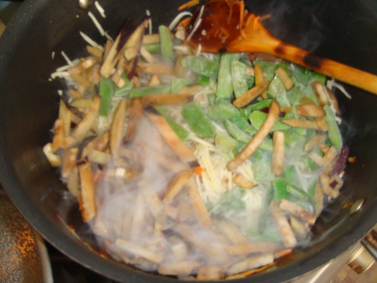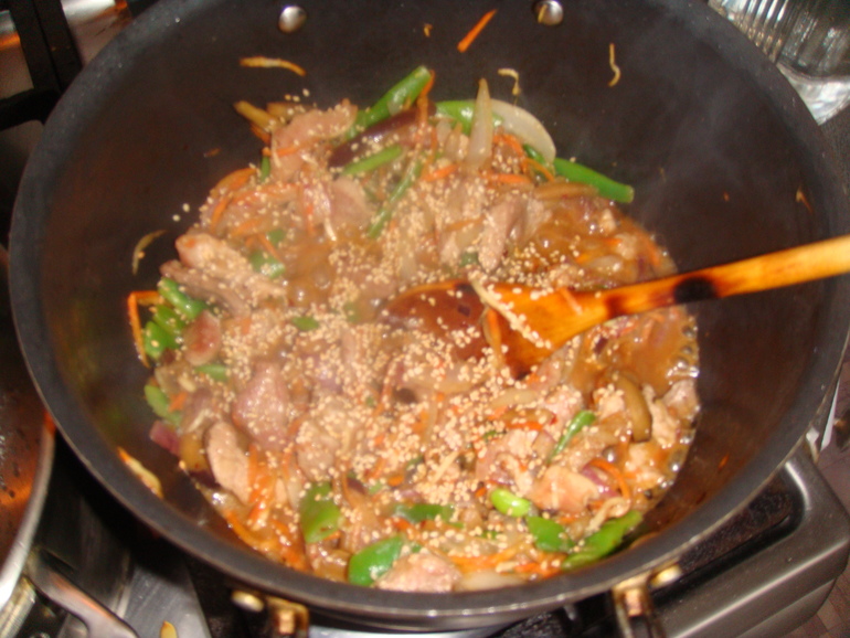 Перемешать и готовить 10 минут, постоянно помешивая. Посыпать кунжутом и подавать:
