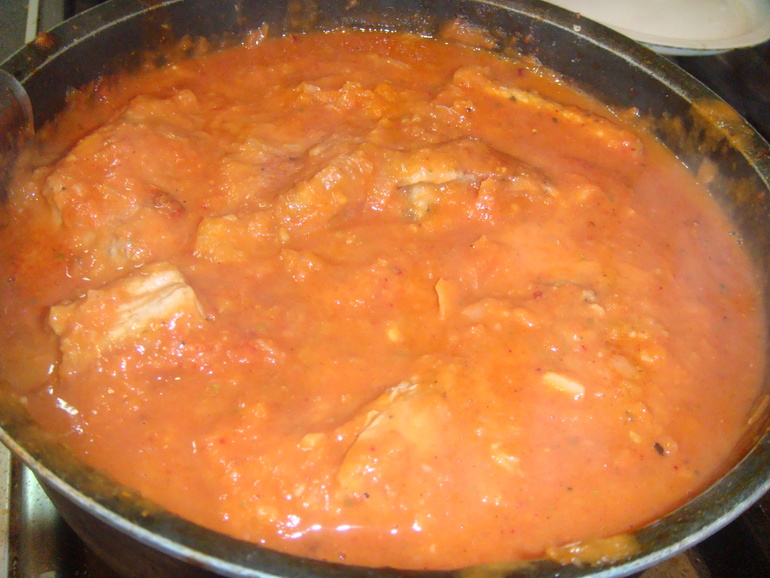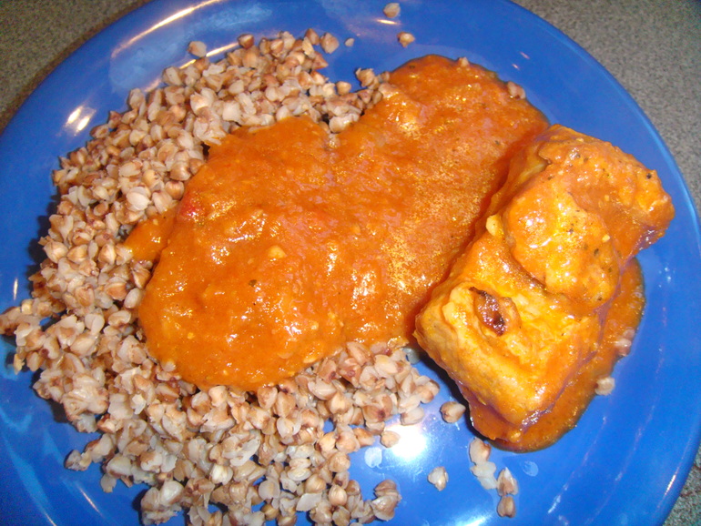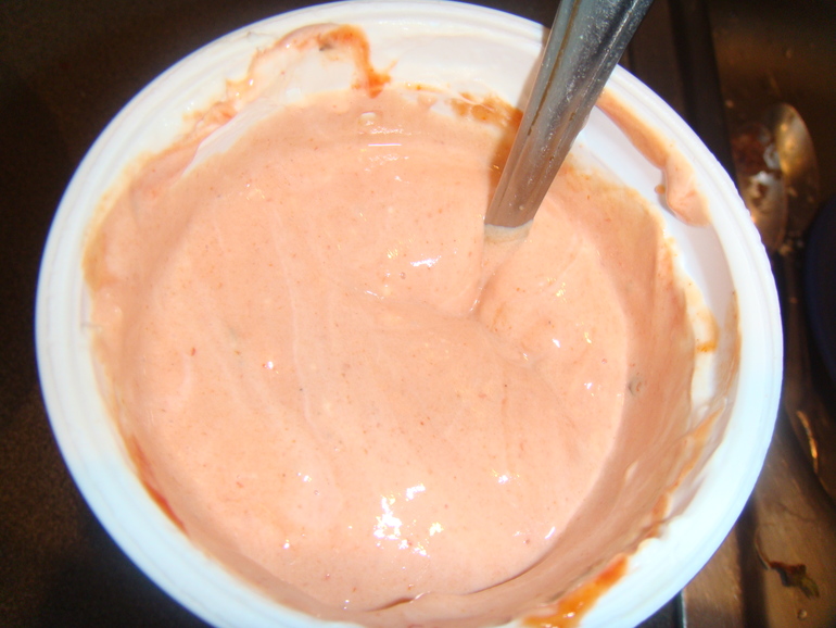 Приготовить соус из сливок (сметаны) и кетчупа с добавлением сахара, соли, паприки: