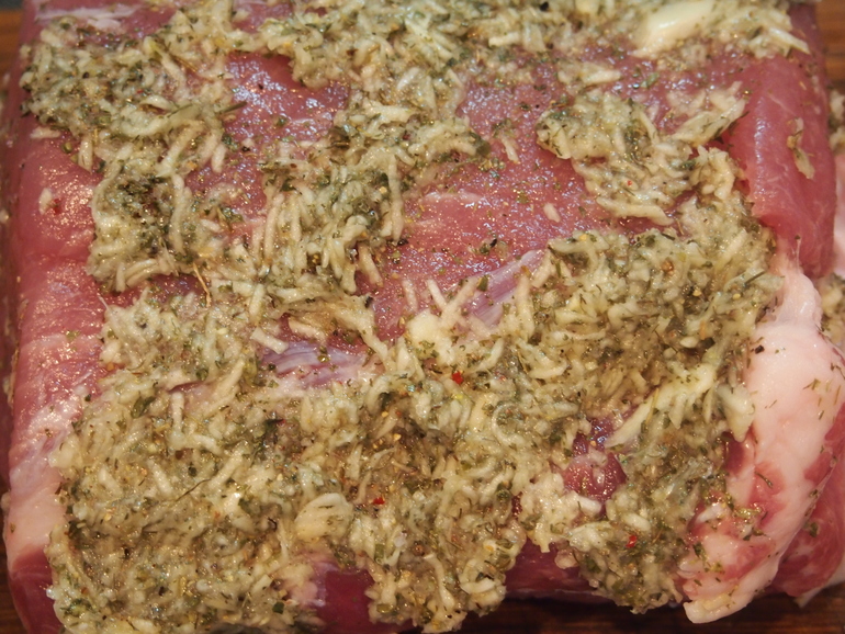 Натереть смесью натертого чеснока, соли, перца, прованских трав: